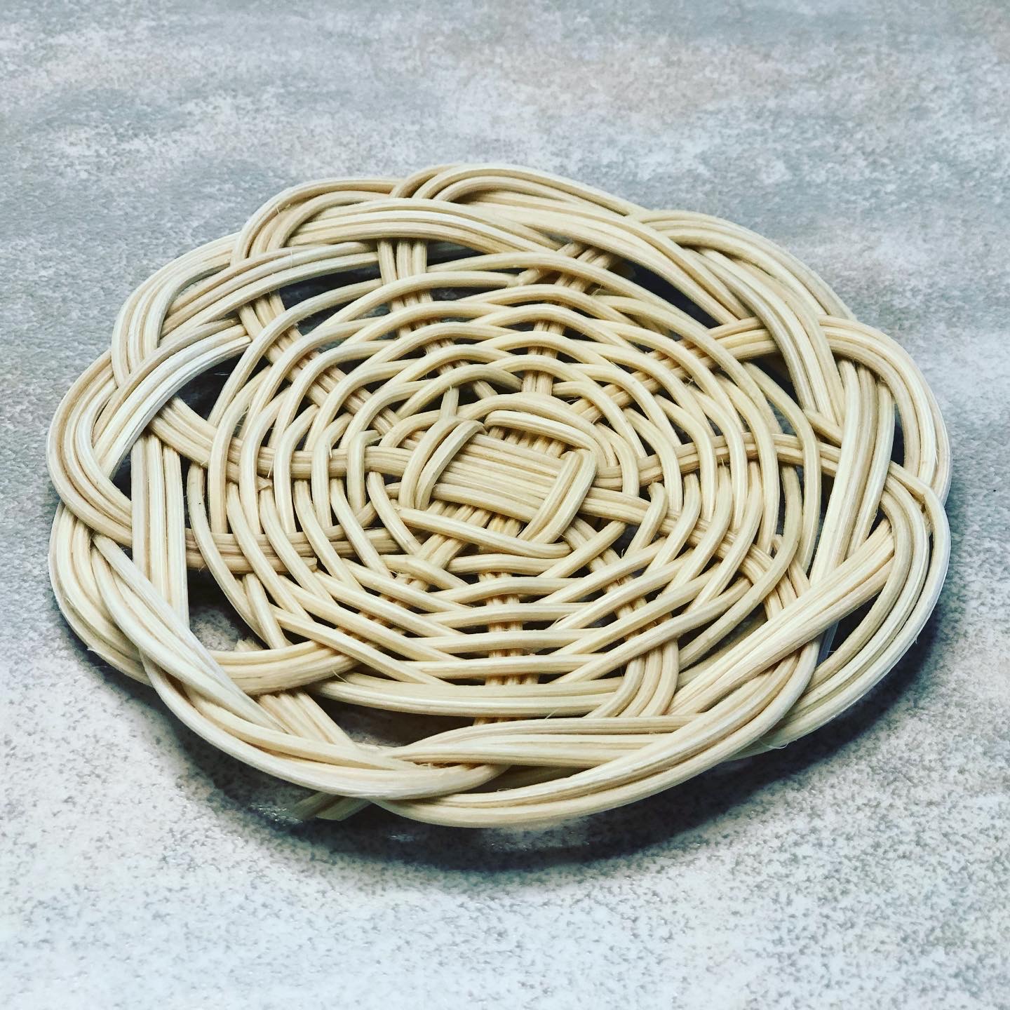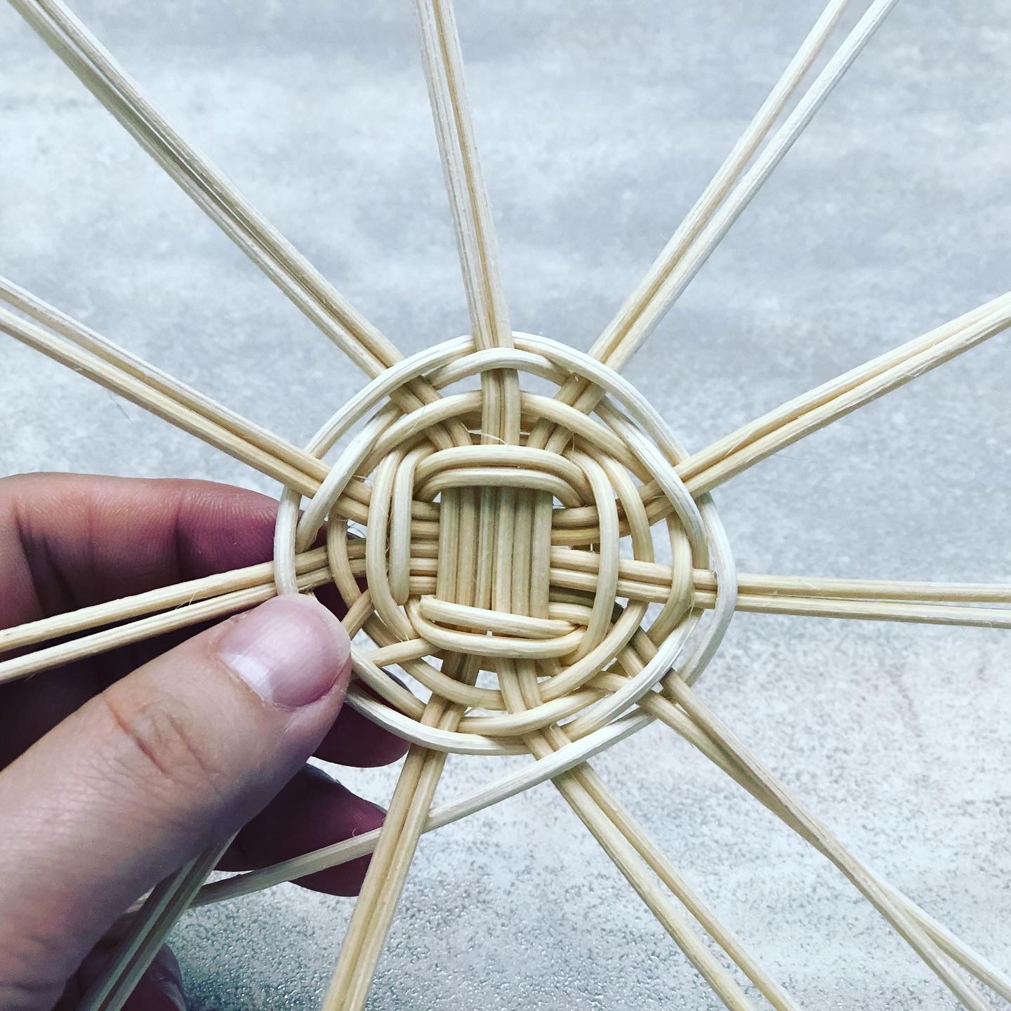 불린 라탄 환심을 줄자로 쟤서 잘 잘라, 십자바닥으로 시작해서 막엮기를 하고 나면 다음과 같이 어디서 많이 본 라탄엮기의 모양을 만날 수가 있는데요.